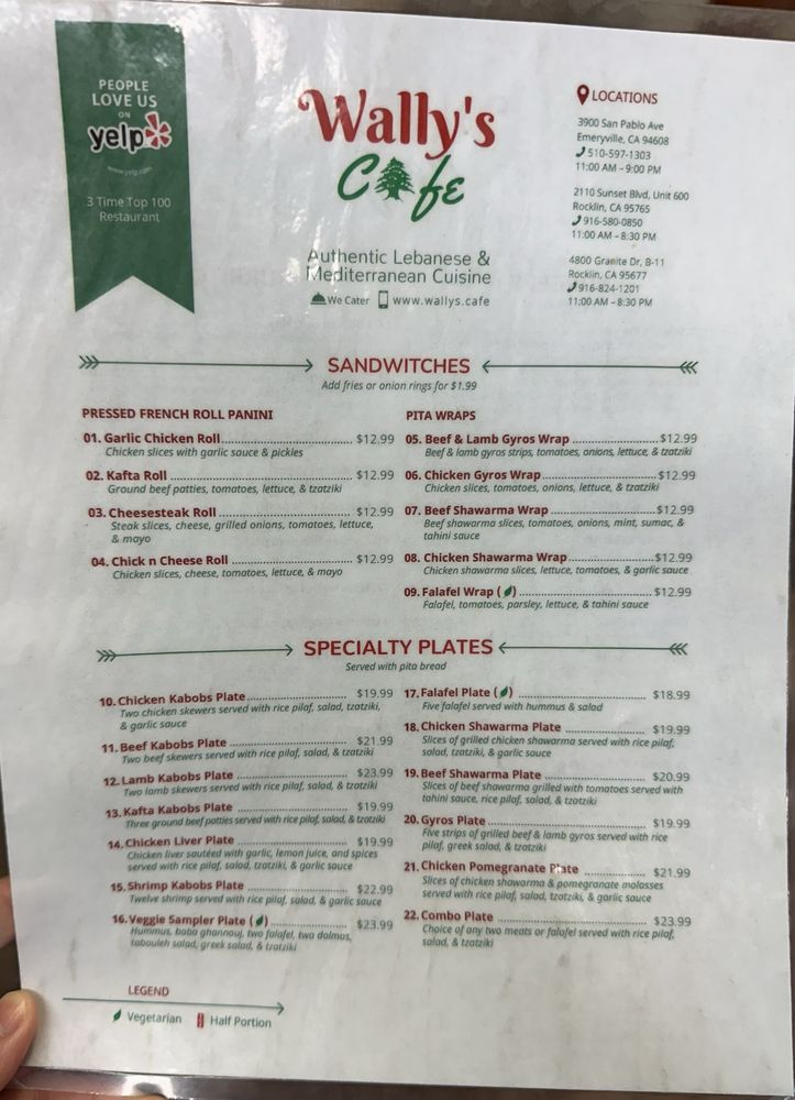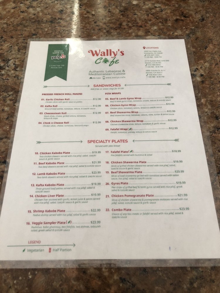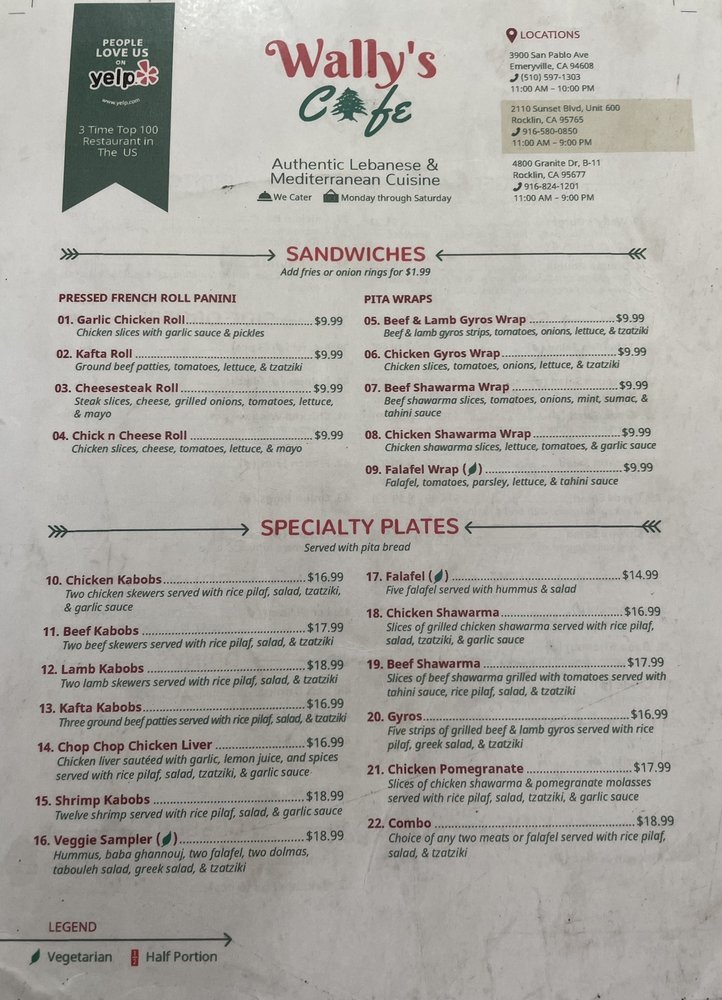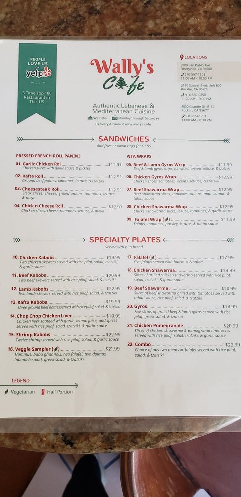 Welcome to Wally’s Cafe, a delightful culinary haven tucked away in Emeryville, CA, specializing in vibrant Middle Eastern and Greek fare. The menu shines with a variety of offerings that cater to diverse palates, from aromatic shawarma plates to crispy falafels, and the much-adored homemade baklava—a sweet ending that critics rave about.
