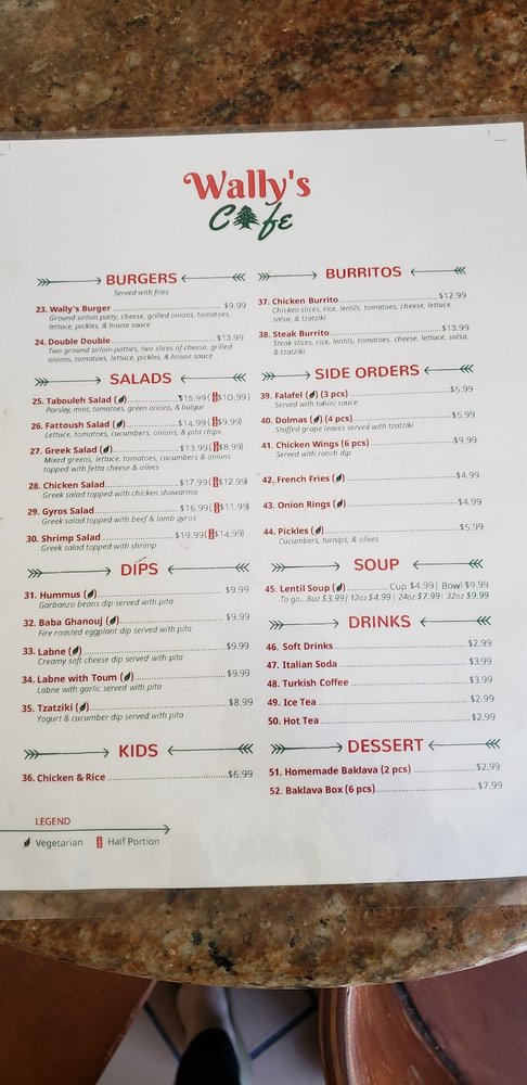 What sets Wally's apart is its commitment to flavor and generous portion sizes, ensuring every visit feels like a hearty feast. Diners can enjoy the warmth of their lentil soup and zestful Mediterranean rice, all while taking advantage of options like vegan dishes and outdoor seating. The atmosphere is casual and welcoming, perfect for families and groups, or those seeking a quick takeaway after a day out.